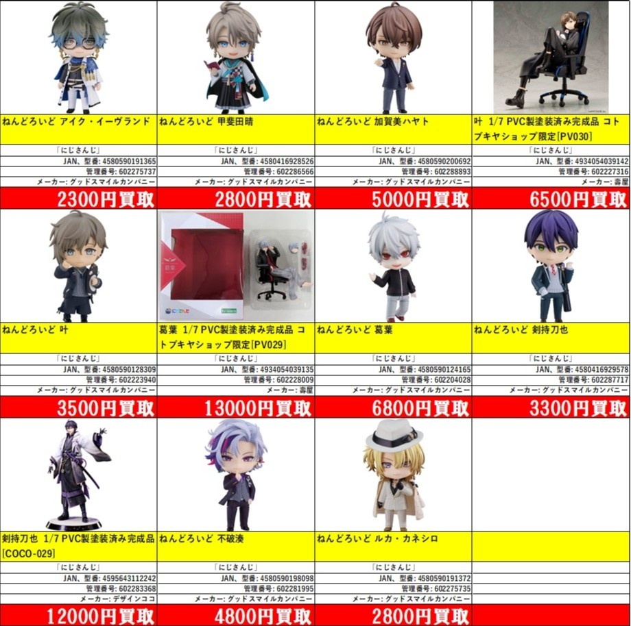 掲載価格は完品美品の買取価格です。品物の状態、在庫状況や市場価格によって買取価格は変動します。掲載アイテムはあらかじめ分けてお持ち込みください。
