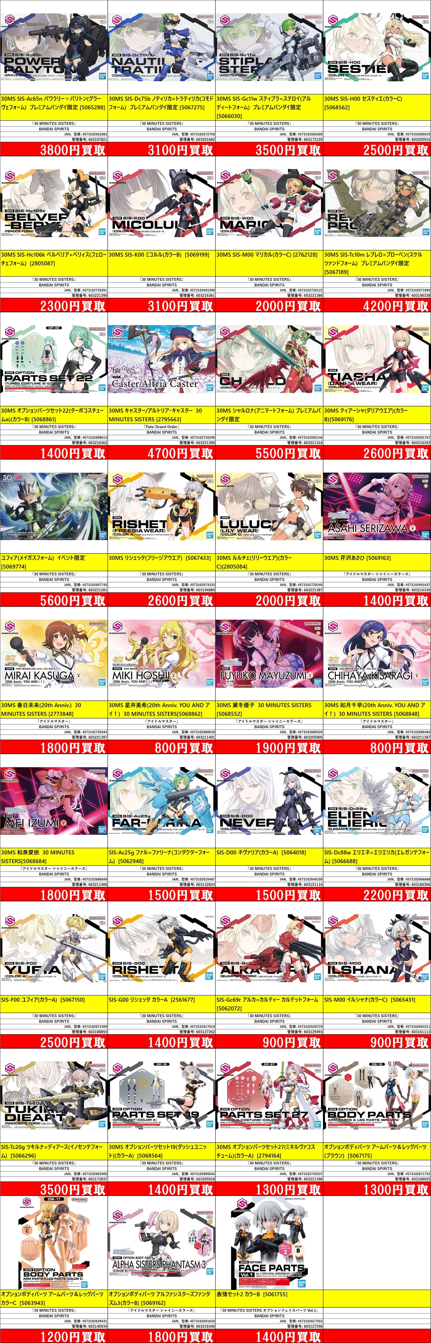 | 603161113 | SIS-M00 イルシャナ(カラーC) | 「30 MINUTES SISTERS」 | [5065431] | BANDAI SPIRITS | 4573102654311 | ¥900 |