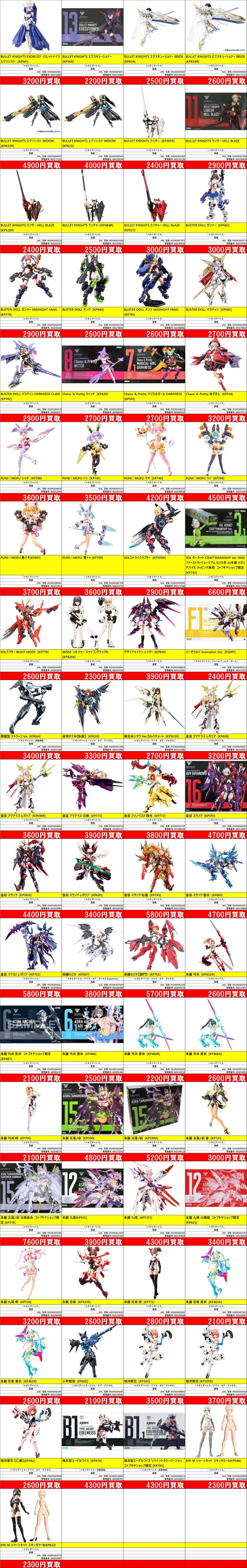| 603129195 | BULLET KNIGHTS エクスキューショナー BRIDE | 「メガミデバイス」 | [KP634] | 壽屋 | 4934054039487 | ¥2,500 |