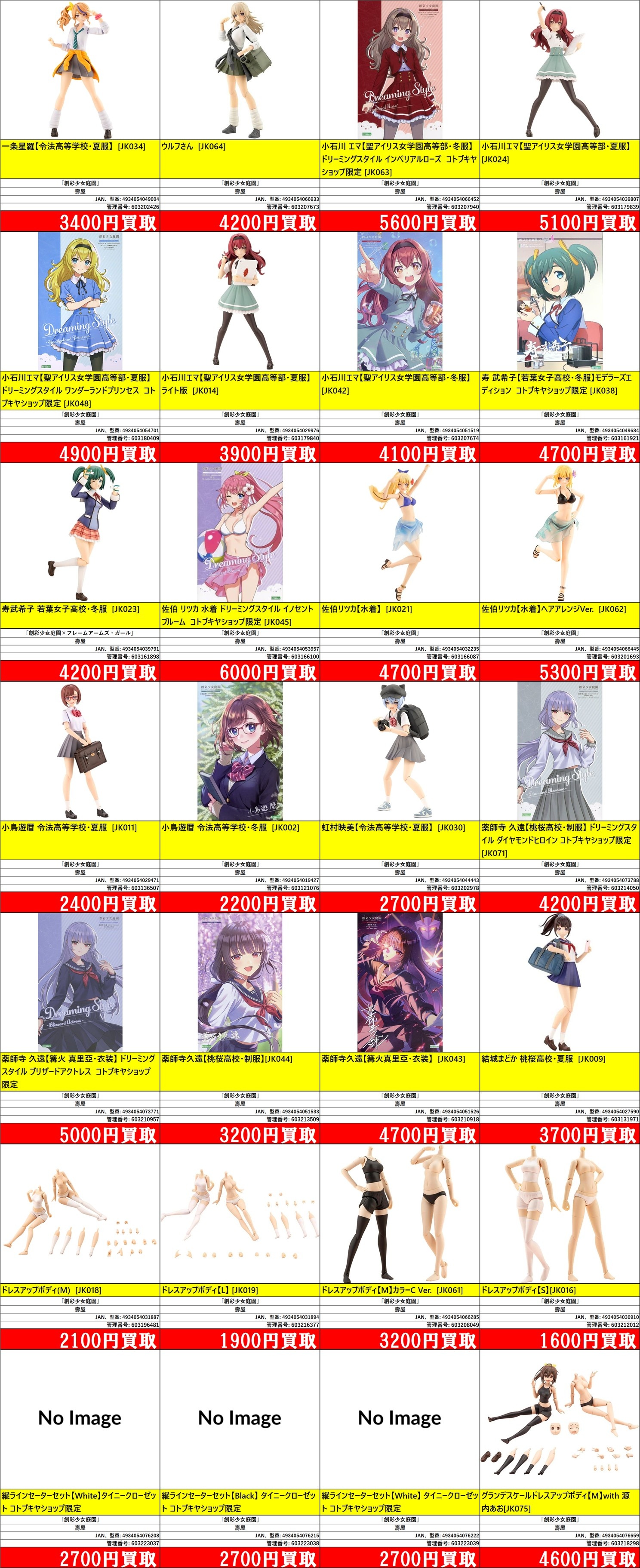 | 603216377 | ドレスアップボディ【L】 | 「創彩少女庭園」 | [JK019] | 壽屋 | 4934054031894 | ¥1,900 |