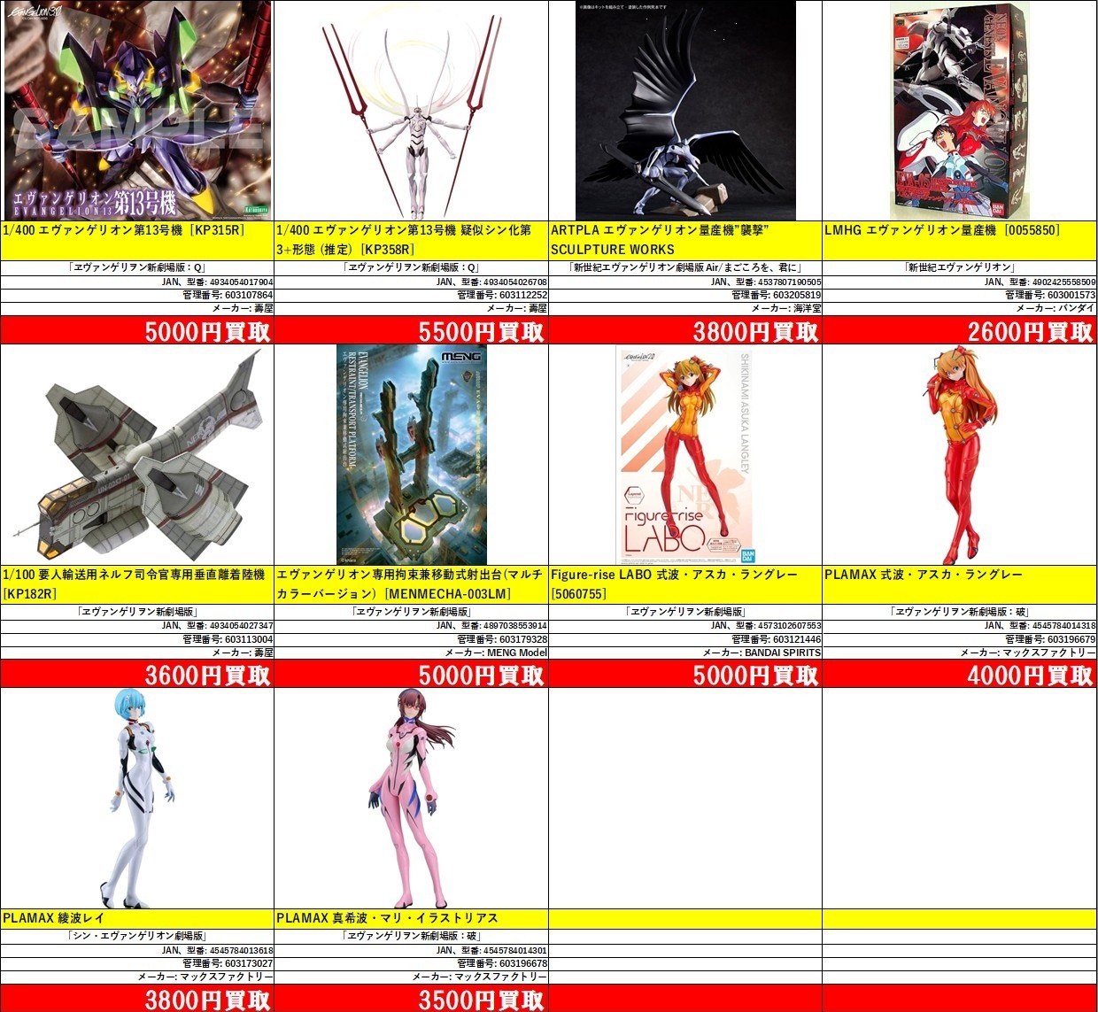 | 603122730 | 1/400 エヴァンゲリオン改8号機γ | 「シン・エヴァンゲリオン劇場版」 | [KP535] | 壽屋 | 4934054019359 | ¥4,500 |