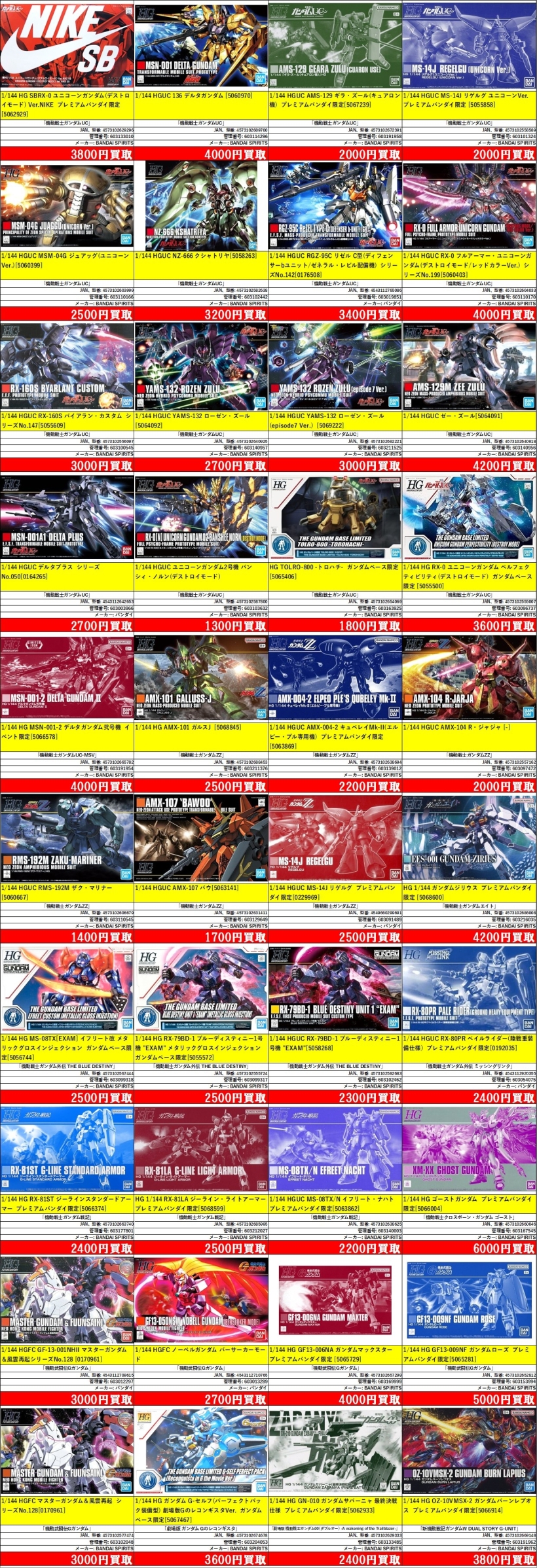 | 603133010 | 1/144 HG SBRX-0 ユニコーンガンダム(デストロイモード) Ver.NIKE プレミアムバンダイ限定 | 「機動戦士ガンダムUC」 | [5062929] | BANDAI SPIRITS | 4573102629296 | ¥3,800 |