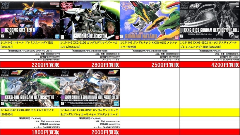 | 603159314 | 1/144 HG XXXG-01D2 ガンダムデスサイズヘル プレミアムバンダイ限定 | 「新機動戦記ガンダムW」 | [5063278] | BANDAI SPIRITS | 4573102632784 | ¥4,200 |