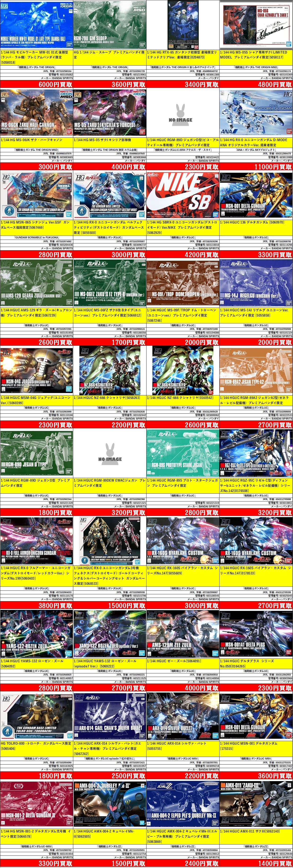 | 管理番号 | 品名 | シリーズ | 商品番号 | メーカー | JAN品番 | 買取価格 |