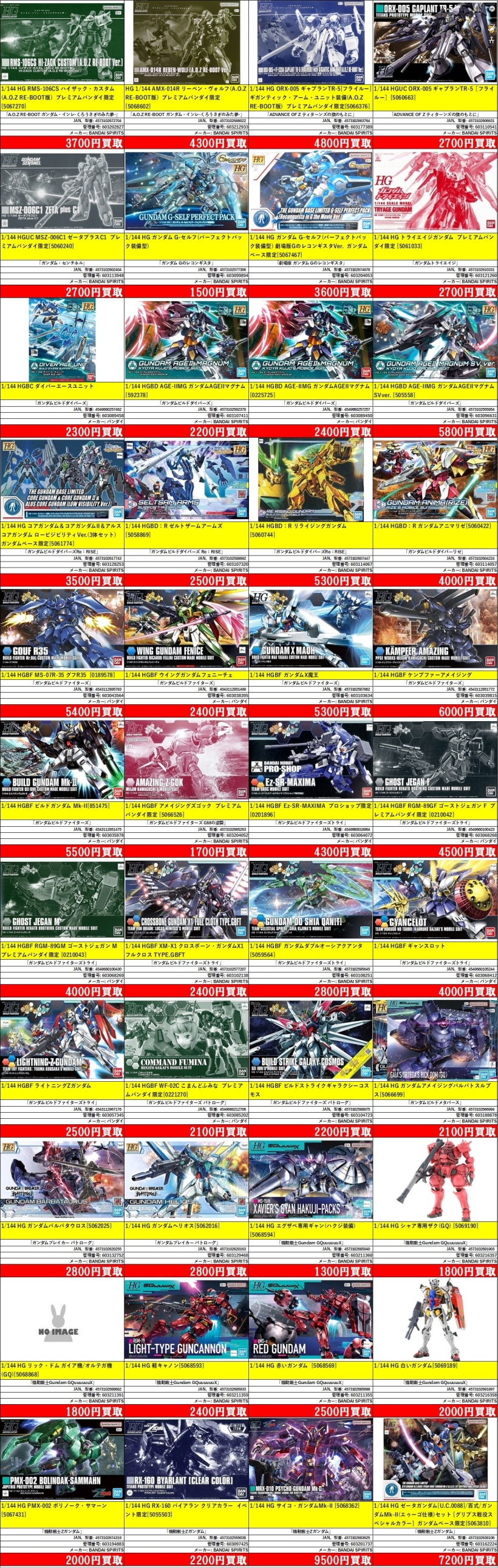 | 603068412 | 1/144 HGBF ギャンスロット | 「ガンダムビルドファイターズトライ」 | [-] | バンダイ | 4549660105244 | ¥4,000 |