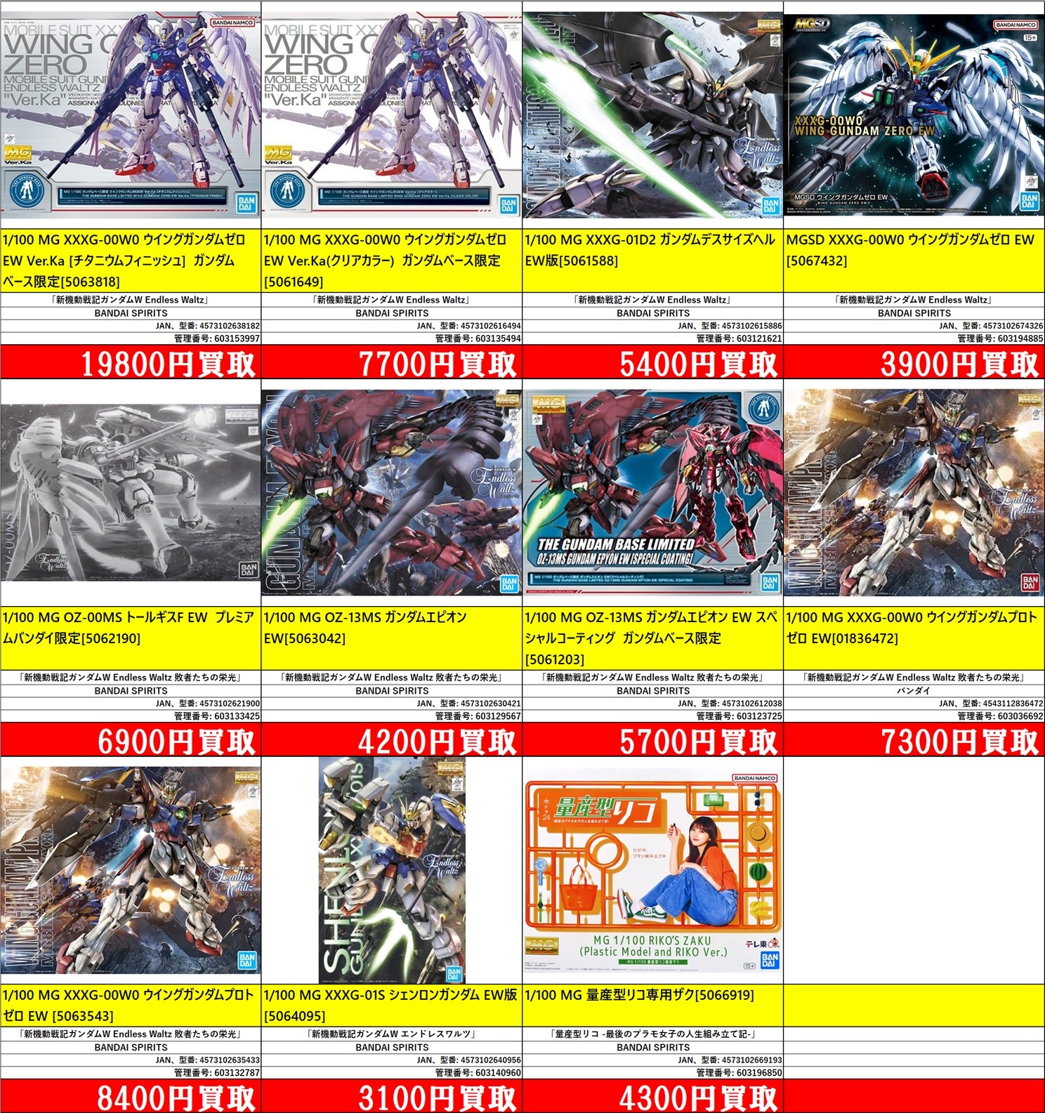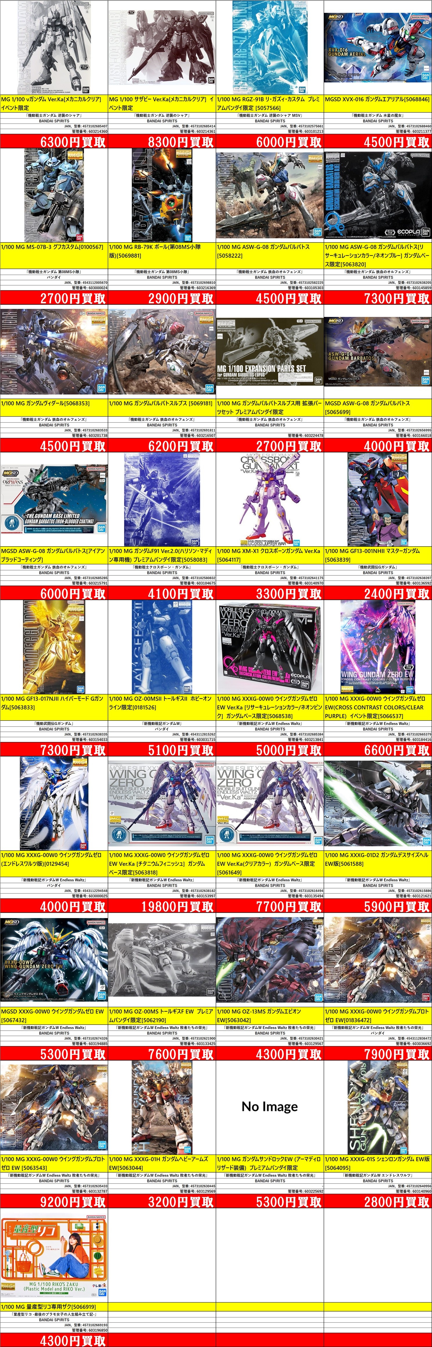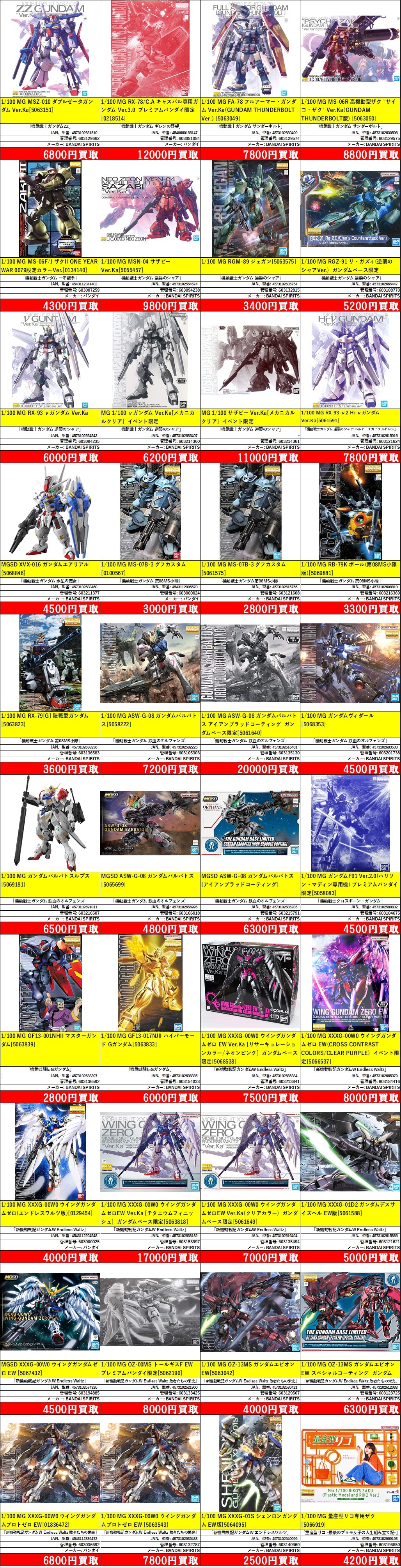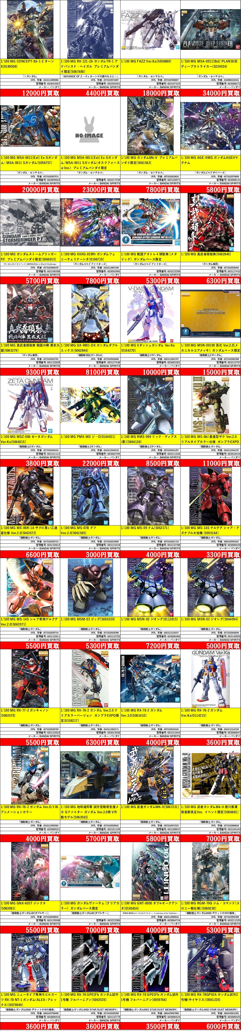 掲載価格は完品美品中袋未開封品の買取価格です。品物の状態、在庫状況や市場価格によって買取価格は変動します。掲載アイテムはあらかじめ分けてお持ち込みください。