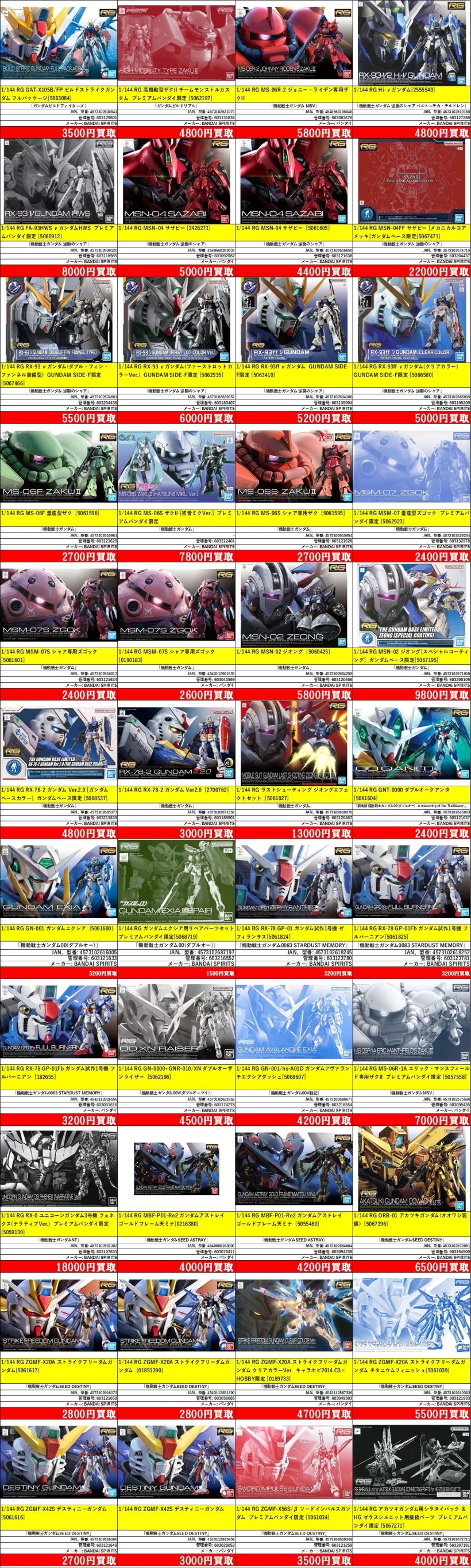 | 603014233 | 1/144 RG ZGMF-X10A フリーダムガンダム | 「機動戦士ガンダムSEED」 | [0171625] | バンダイ | 4543112716255 | ¥2,500 |