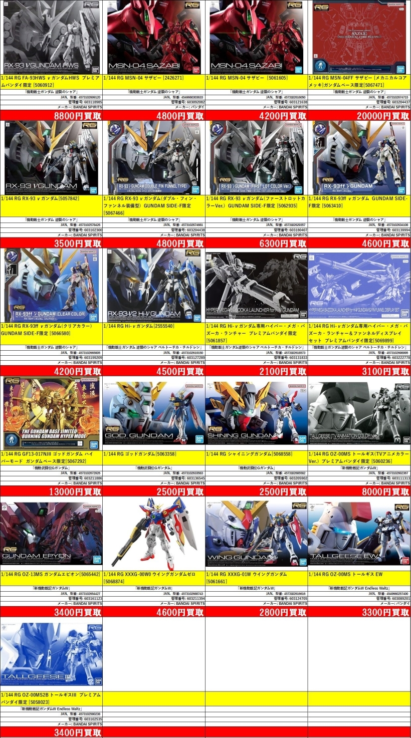 掲載価格は完品美品中袋未開封品の買取価格です。品物の状態、在庫状況や市場価格によって買取価格は変動します。掲載アイテムはあらかじめ分けてお持ち込みください。