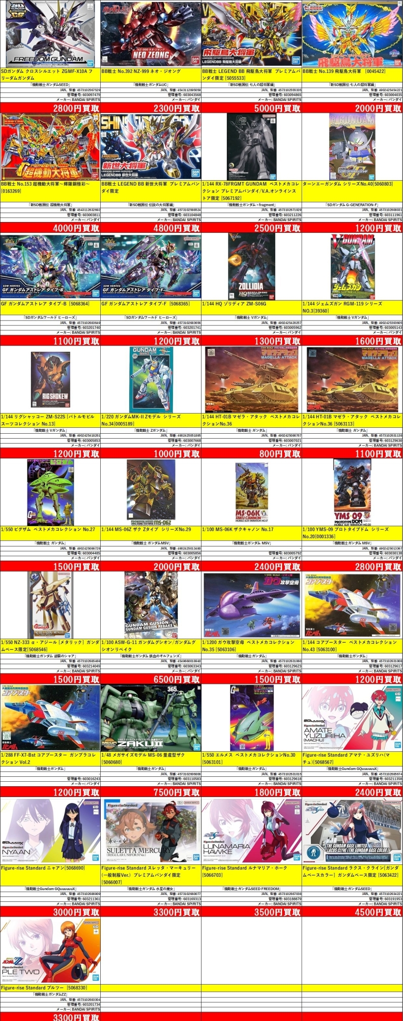 掲載価格は完品美品中袋未開封品の買取価格です。品物の状態、在庫状況や市場価格によって買取価格は変動します。掲載アイテムはあらかじめ分けてお持ち込みください。