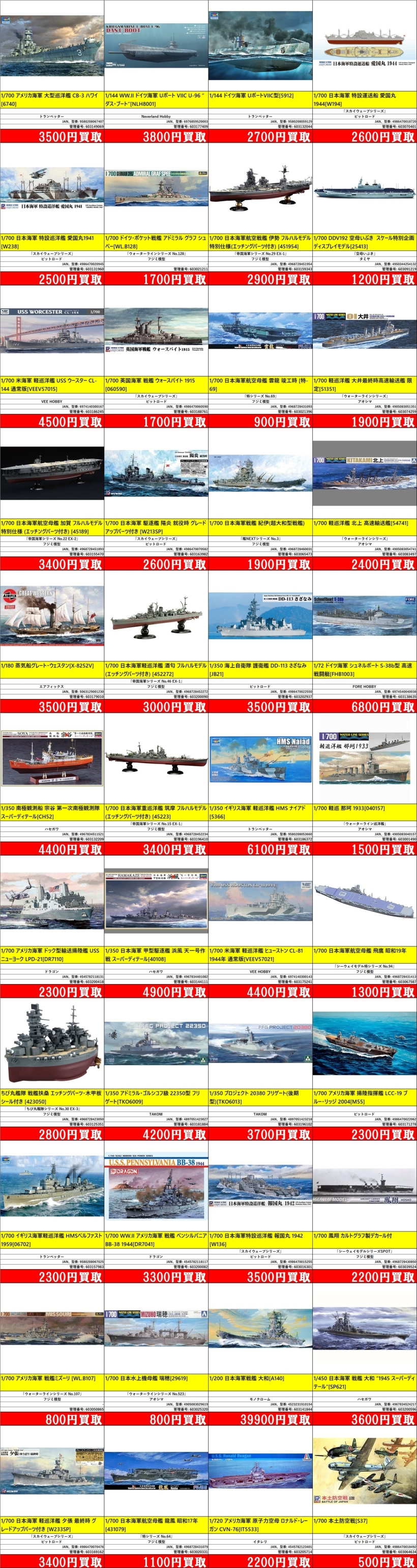 | 603141844 | 1/200 日本海軍戦艦 大和 | [-] | [A140] | モノクローム | 4523231910154 | ¥39,900 |