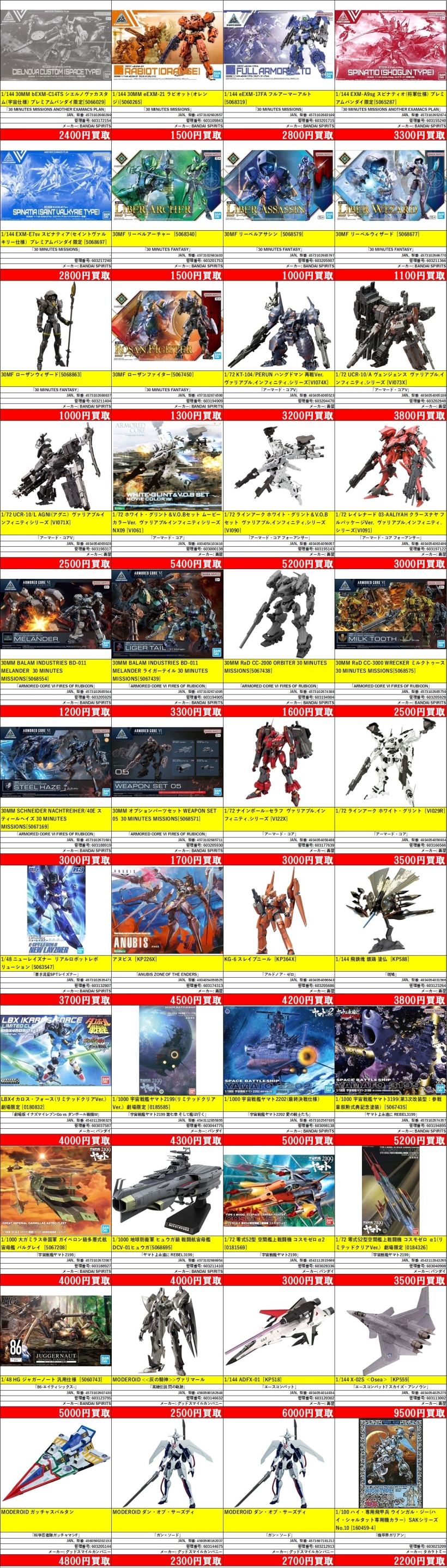 | 603155240 | 1/144 EXM-A9sg スピナティオ(将軍仕様) プレミアムバンダイ限定「30 MINUTES MISSIONS ANOTHER EXAMACS PLAN」 | [5065287] | BANDAI SPIRITS | 4573102652874 | ¥3,300 |