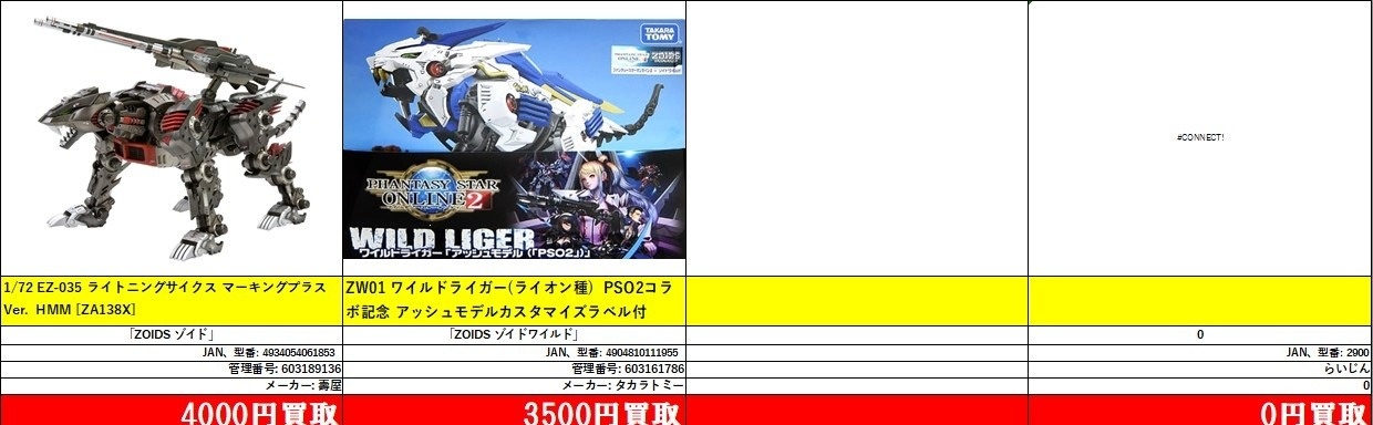 | 603158848 | ZOIDS AZ-02 ライガーゼロ | 「ZOIDS ゾイド40thアニバーサリーモデル」 | [-] | タカラトミー | 4904810227557 | ¥7,000 |