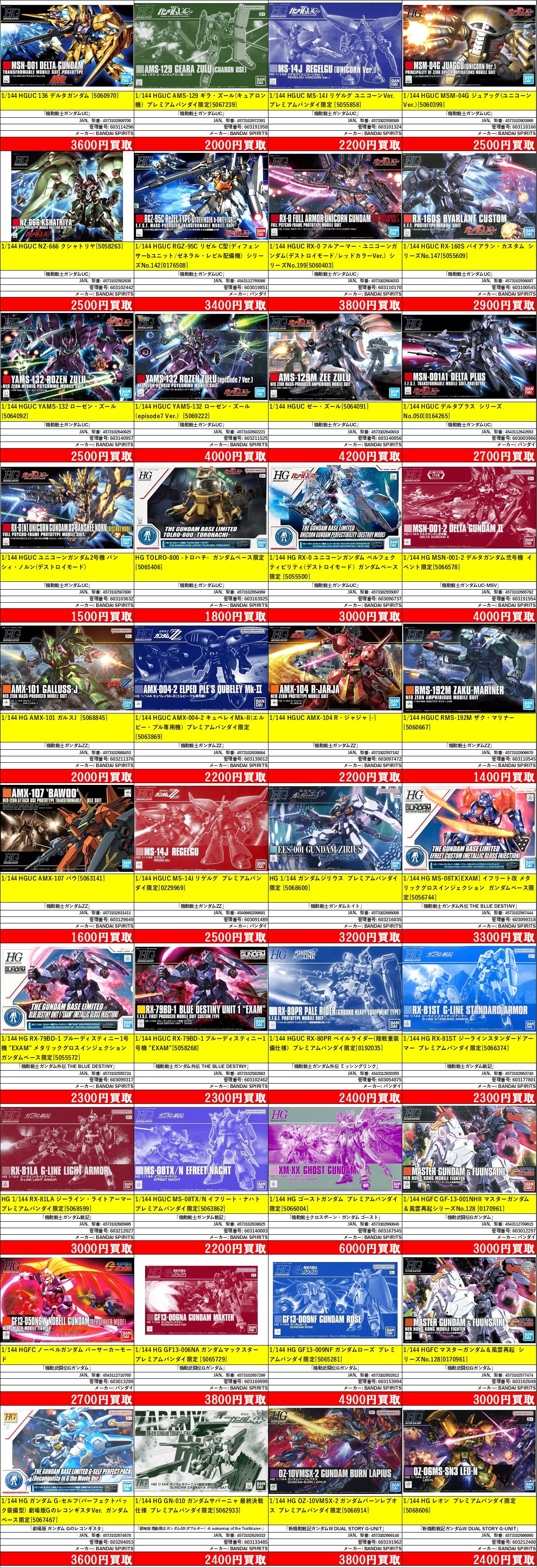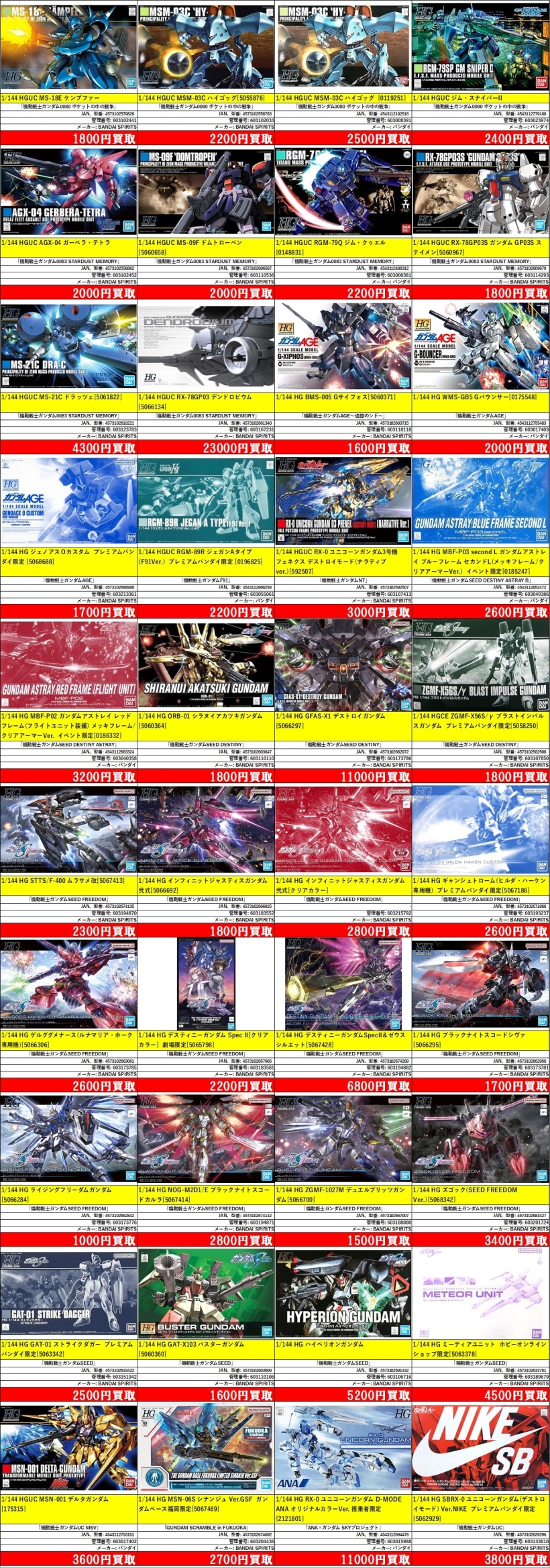 掲載価格は完品美品中袋未開封品の買取価格です。品物の状態、在庫状況や市場価格によって買取価格は変動します。掲載アイテムはあらかじめ分けてお持ち込みください。