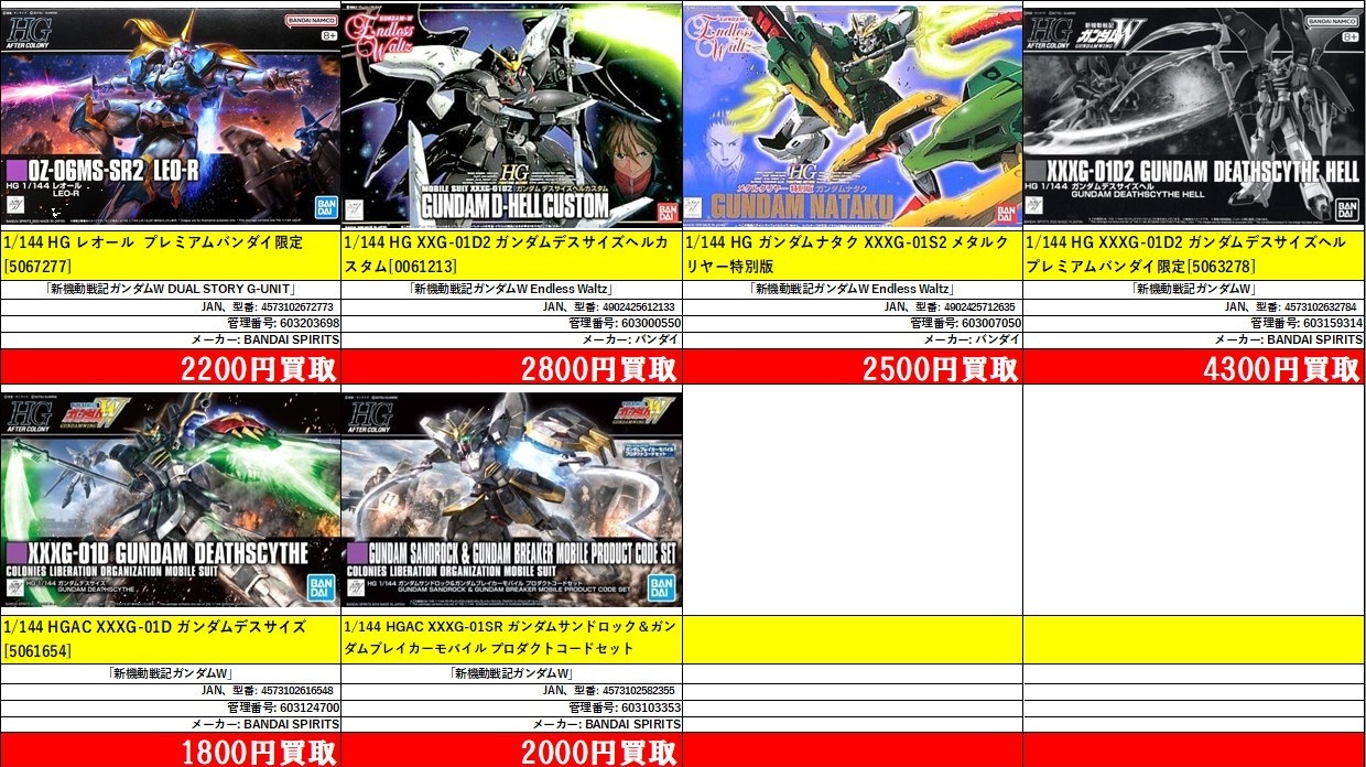 | 603159314 | 1/144 HG XXXG-01D2 ガンダムデスサイズヘル プレミアムバンダイ限定 | 「新機動戦記ガンダムW」 | [5063278] | BANDAI SPIRITS | 4573102632784 | ¥4,300 |