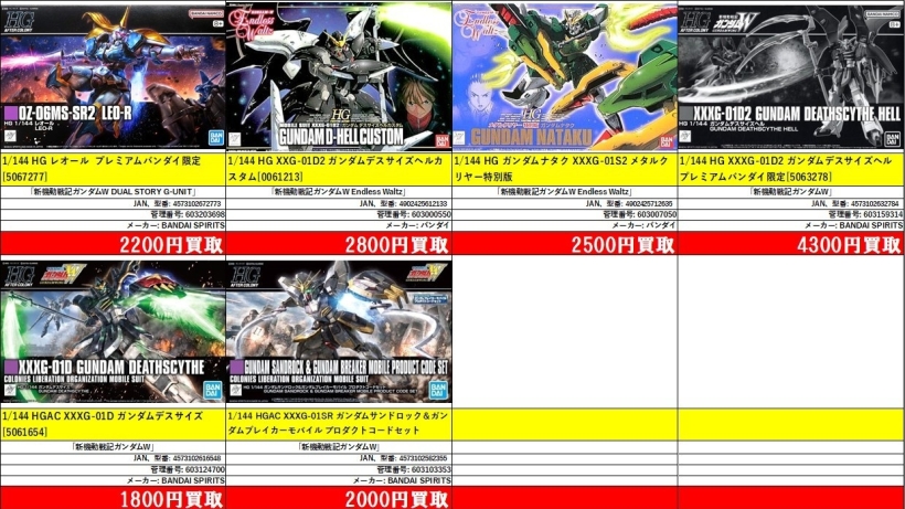 | 603124700 | 1/144 HGAC XXXG-01D ガンダムデスサイズ | 「新機動戦記ガンダムW」 | [5061654] | BANDAI SPIRITS | 4573102616548 | ¥1,800 |