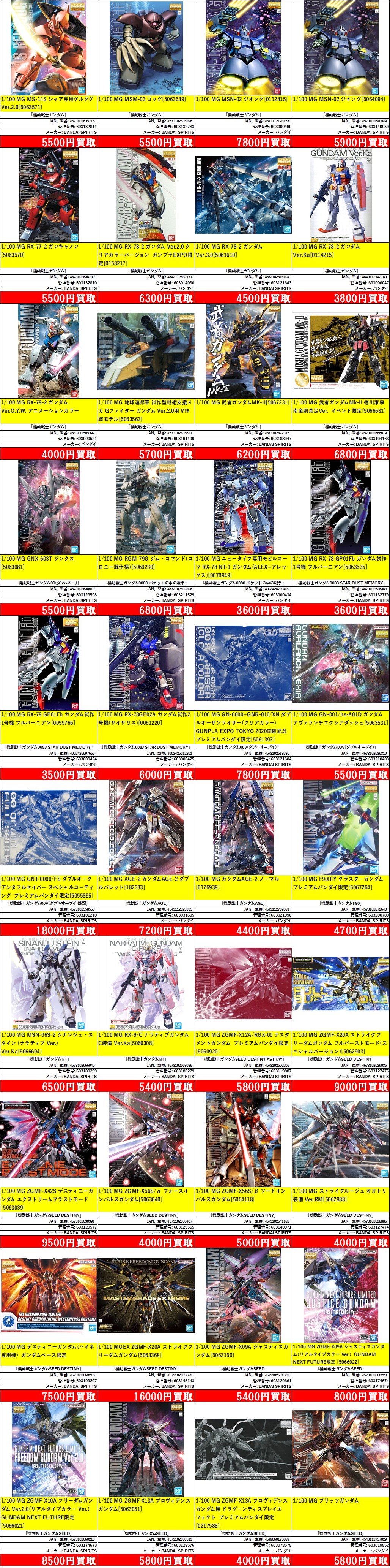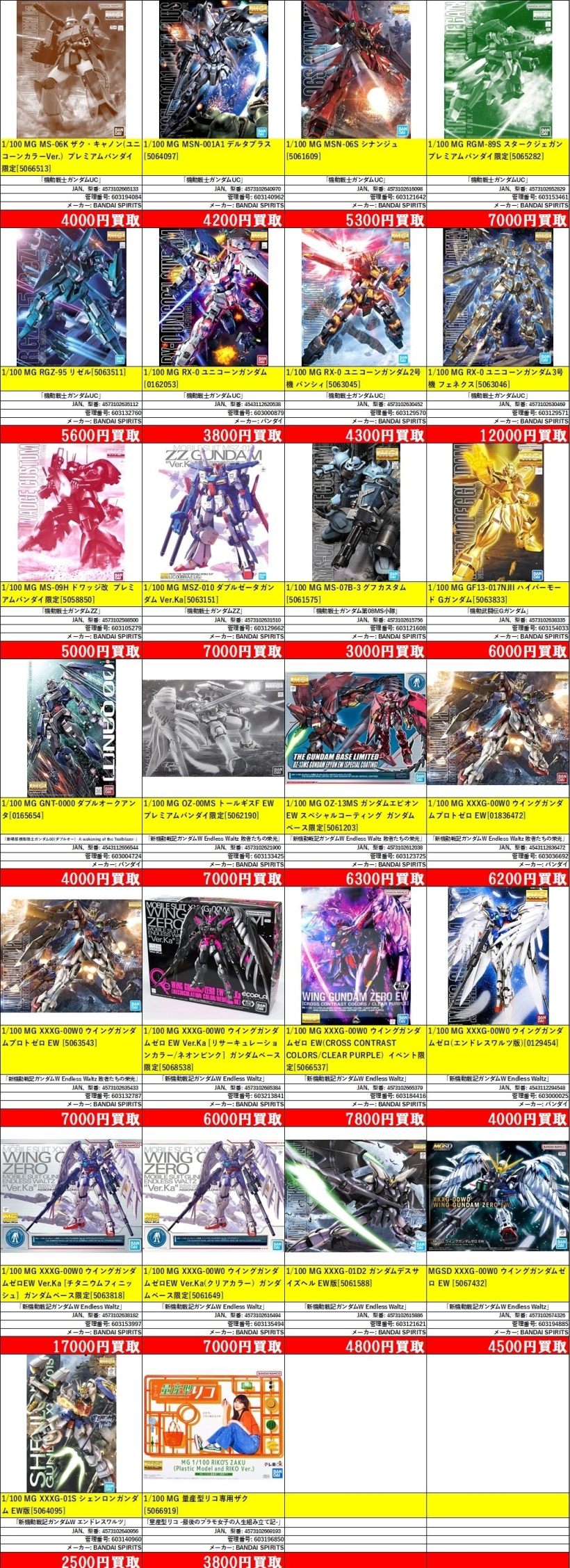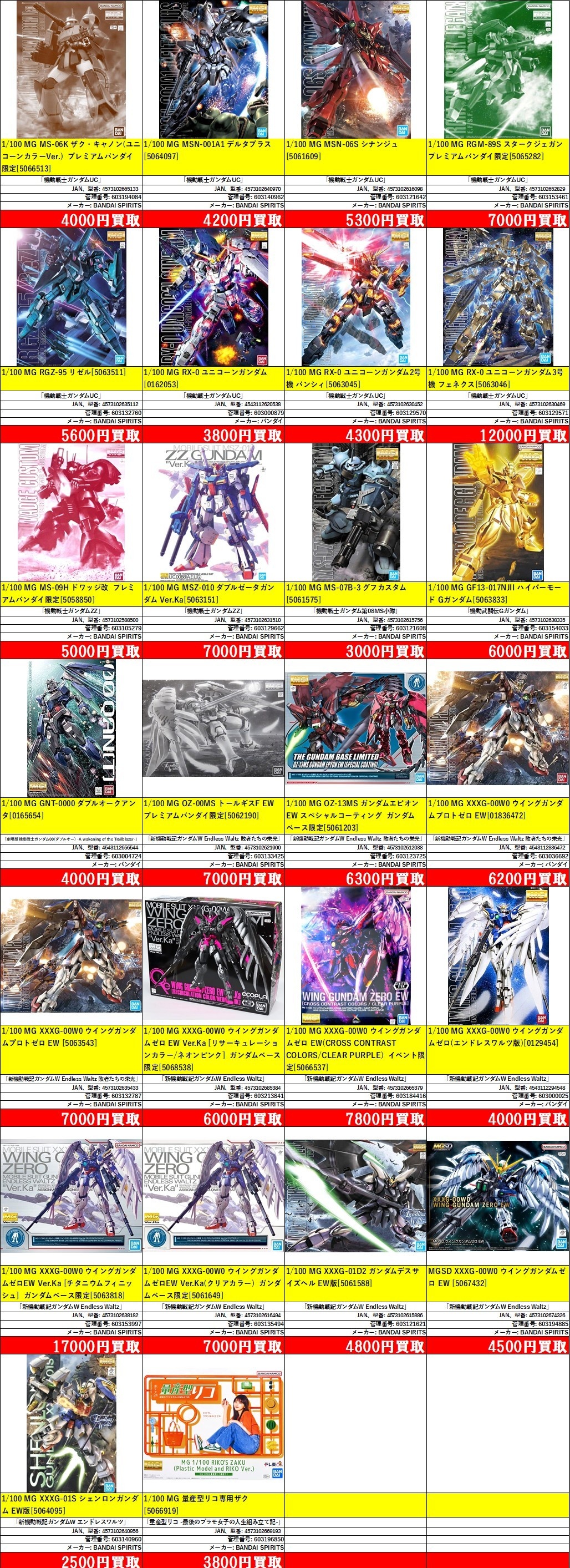 掲載価格は完品美品中袋未開封品の買取価格です。品物の状態、在庫状況や市場価格によって買取価格は変動します。掲載アイテムはあらかじめ分けてお持ち込みください。