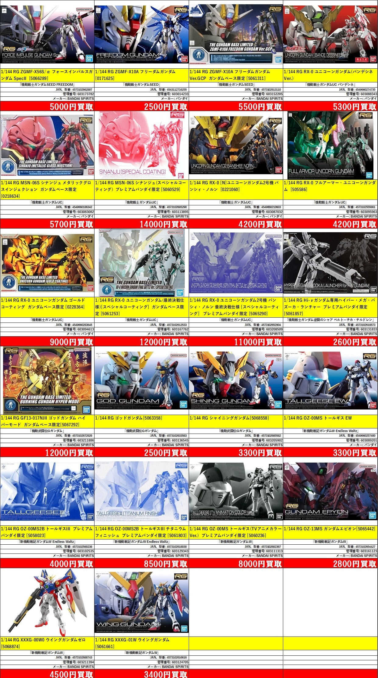 | 603111313 | 1/144 RG OZ-00MS トールギス(TVアニメカラーVer.) プレミアムバンダイ限定 | 「新機動戦記ガンダムW」 | [5060236] | BANDAI SPIRITS | 4573102602367 | ¥8,000 |