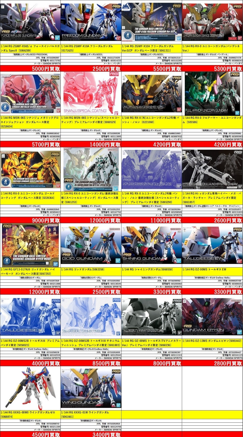 | 603014233 | 1/144 RG ZGMF-X10A フリーダムガンダム | 「機動戦士ガンダムSEED」 | [0171625] | バンダイ | 4543112716255 | ¥2,500 |