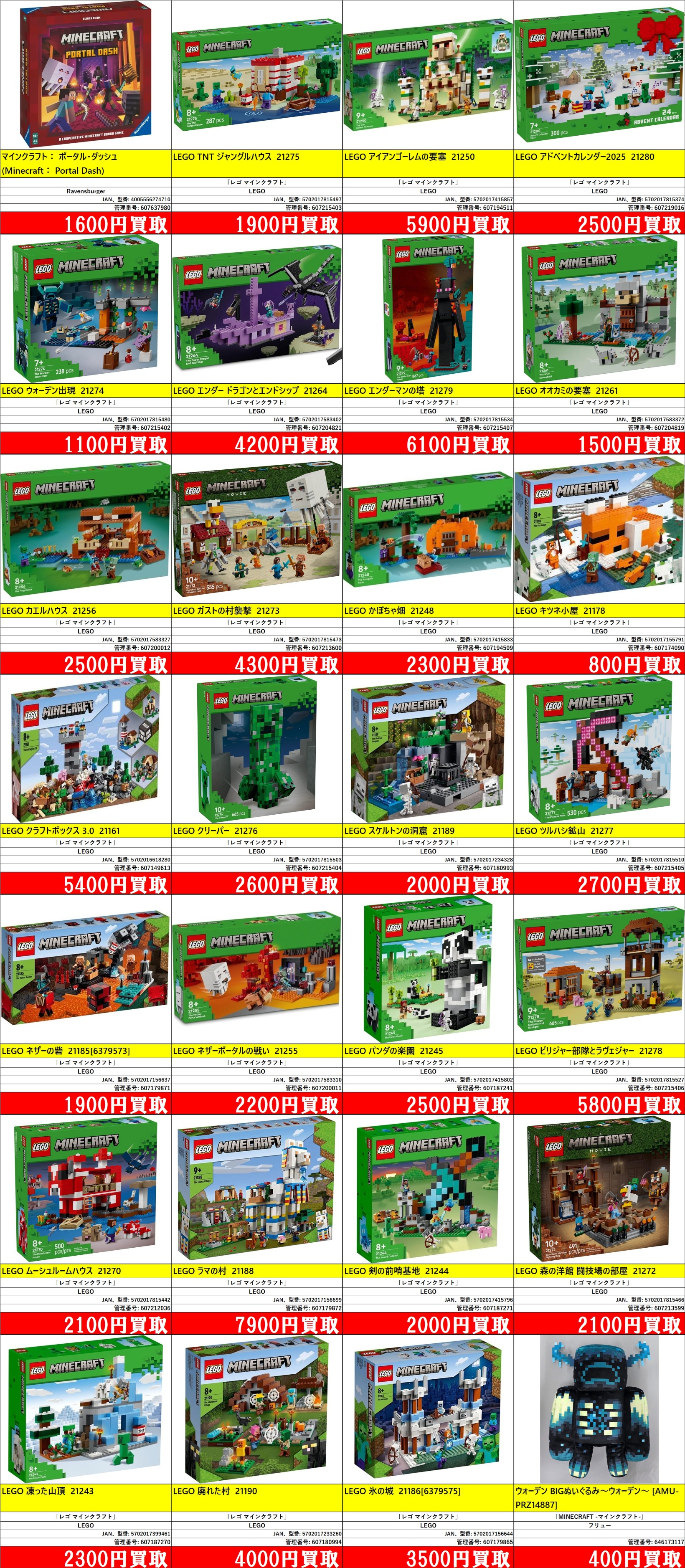 | 607219016 | LEGO アドベントカレンダー2025 21280 | 「レゴ マインクラフト」 | [-] | LEGO | 5702017815374 | ¥2,500 |