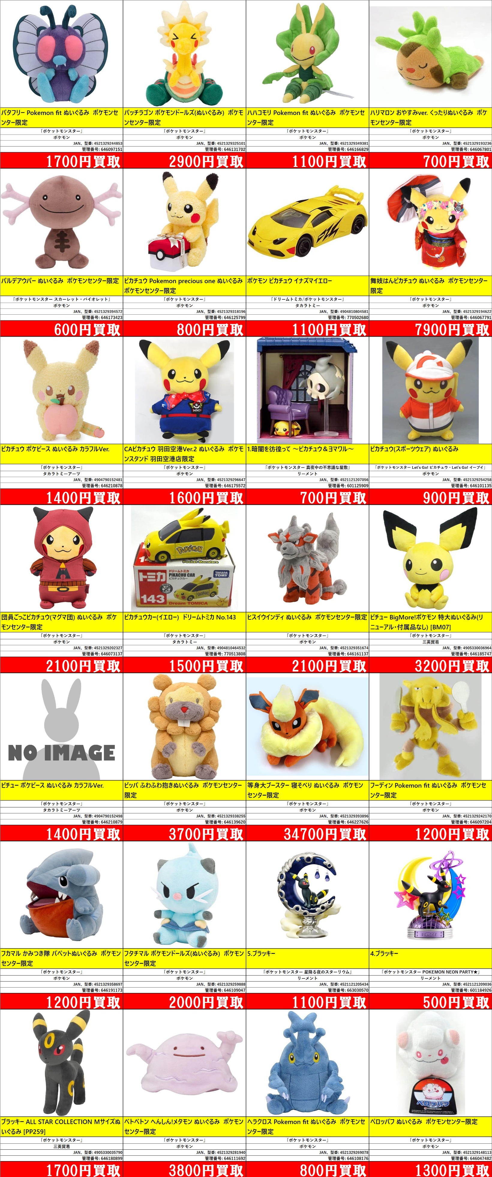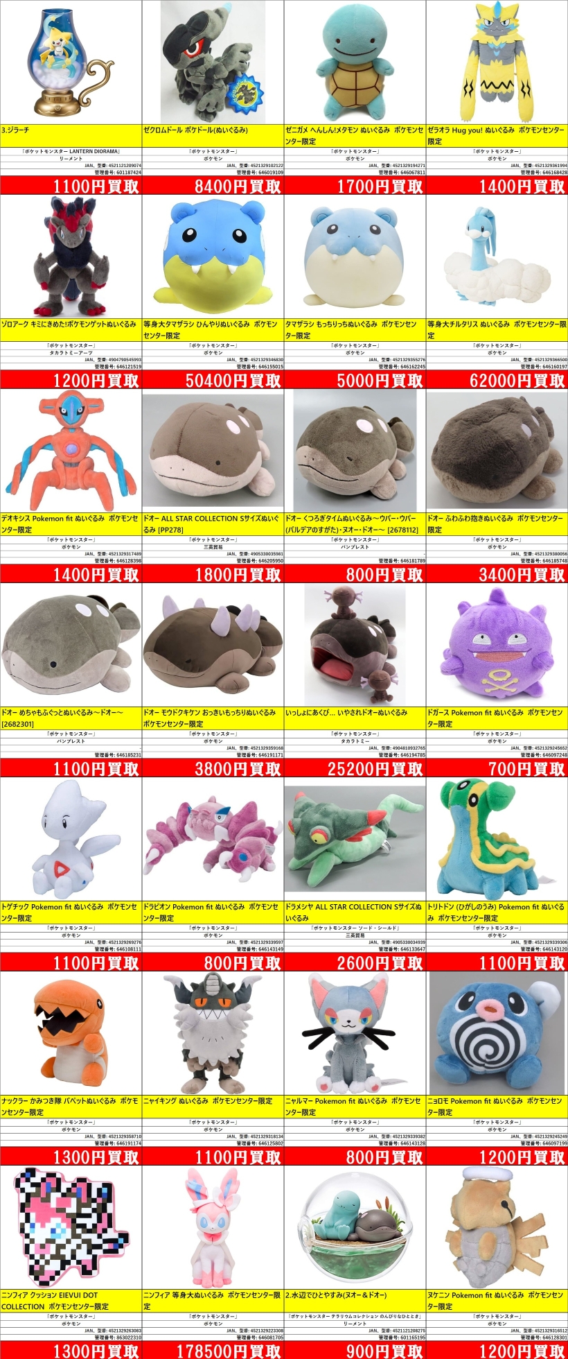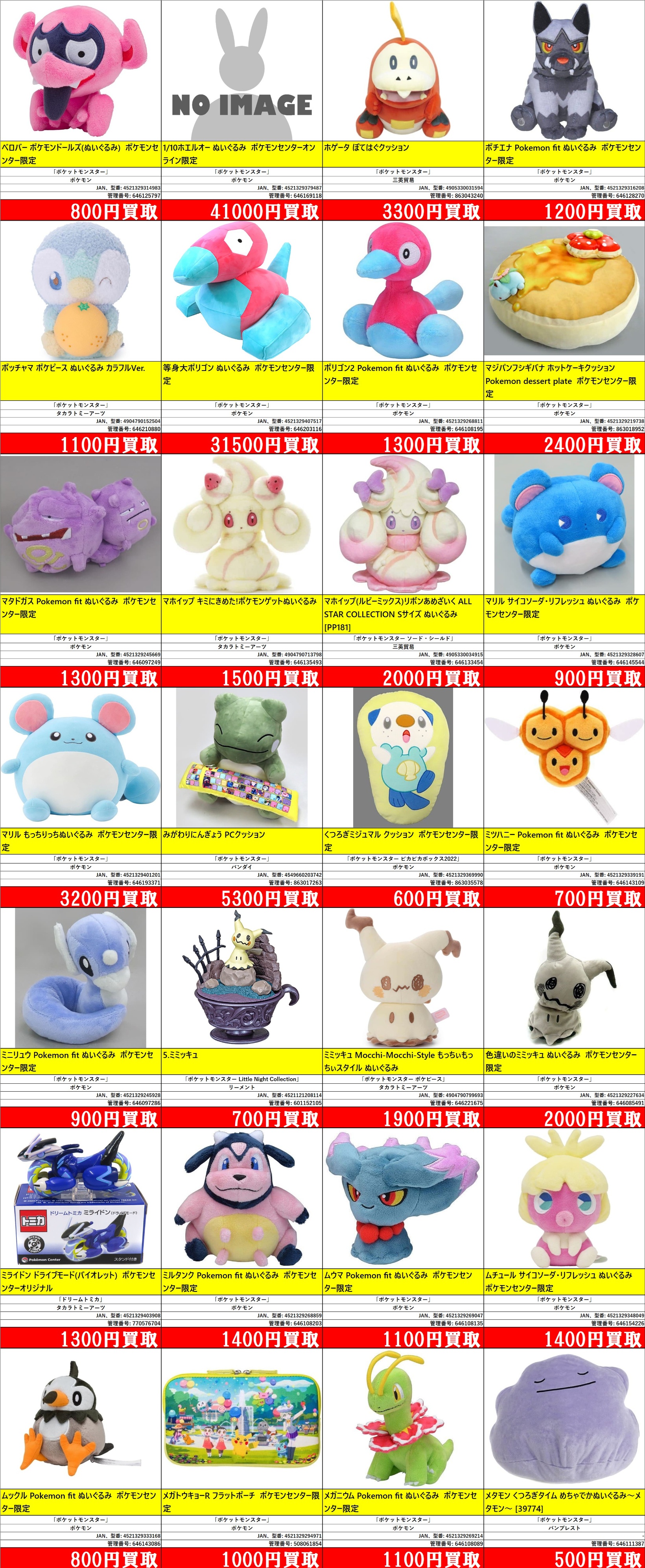 | 646085491 | 色違いのミミッキュ ぬいぐるみ ポケモンセンター限定 | 「ポケットモンスター」 | [-] | ポケモン | 4521329227634 | ¥2,000 |