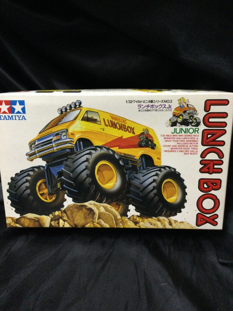 1/32 ワイルドミニ四駆シリーズNO.1「モンスタービートルJr.」 ITEM 17001 当時レーサーミニ四駆と違ってあまり人気がなかったのですが、私はスピードはラジコンとミニ四駆のアバンテJr.ブラックスペシャルで満足しこちらで遊んでいました。見た目がカッコイイと思っておりました。 でっかいタイヤで悪路も問題なし!!と思うのですが...ホイールとギアが一体化しており、ここにグリスを塗ると 砂をベタベタに噛んで大変なことに!! オフロードですが室内で障害物などを設置して走らせるのが常でした。しかし懐かしすぎる。